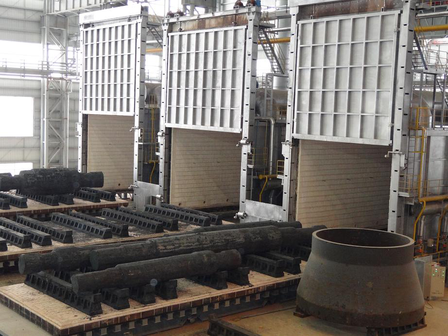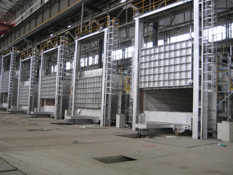 鋁合金淬火爐適用于對(duì)大、中型鋁合金產(chǎn)品零部件的固溶熱處理及時(shí)效處理,由加熱爐罩和移動(dòng)式底架組成的。方形(或圓形)爐罩頂裝有起重機(jī),通過(guò)鏈條和掛鉤可將料筐吊至爐膛。爐罩由型鋼支起,底部有氣動(dòng)(或電動(dòng))操作的爐門。位于爐罩下方的底架可沿軌道移動(dòng)、定位,底架上面載有淬火水槽和料筐等。